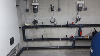 Sala de máquinas con equipos de filtración, dosificación automática de cloro y dosificación automática de ph