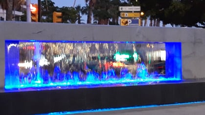 cascada de 5 metros de longitud y conjunto de seis surtidores controlados por DMX